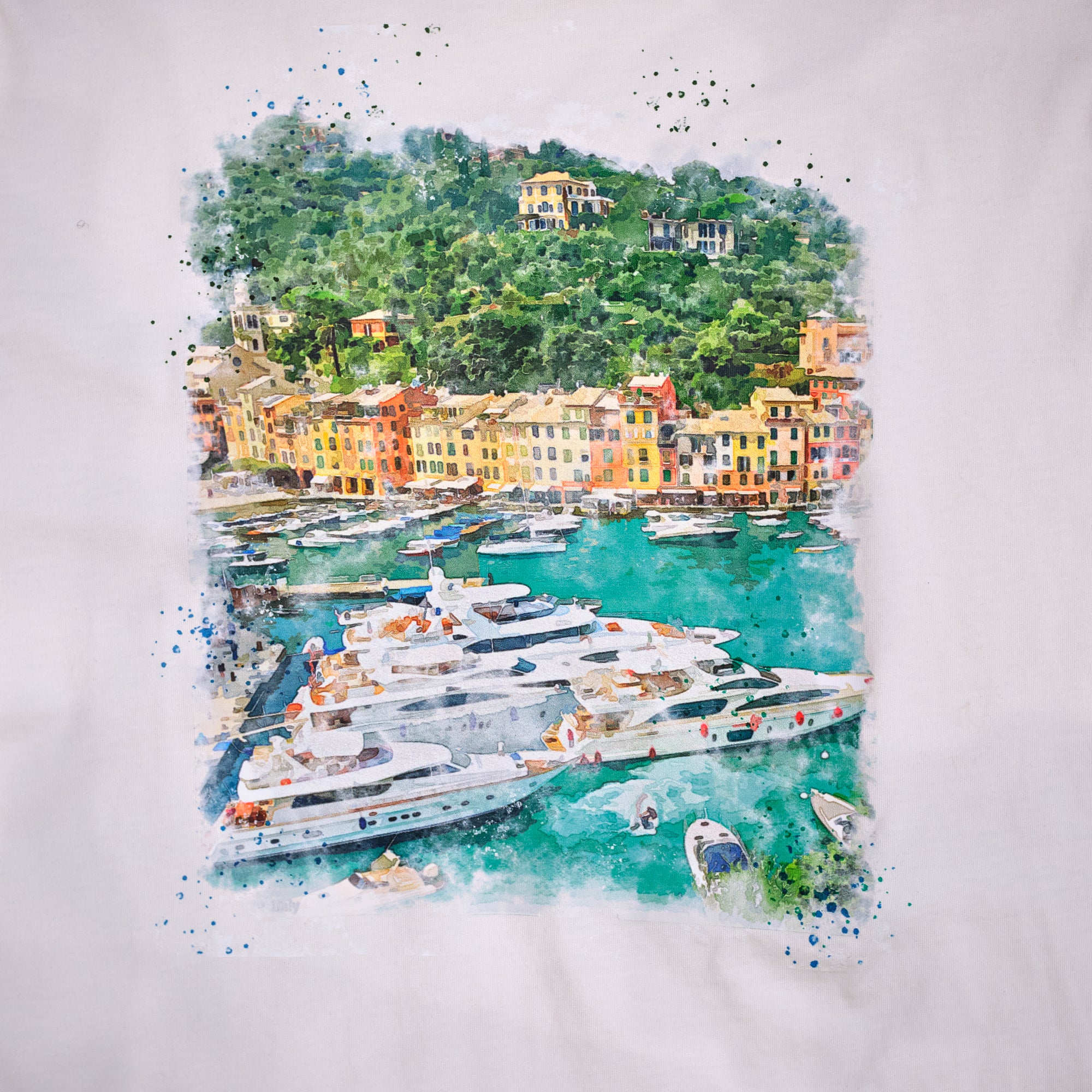 Introducing the Hush Yacht Club T-Shirt, a perfect blend of simplicity and elegance. This stylish tee features a minimalist front design with the "Hush Yacht Club" logo in blue, positioned on the left chest. The back of the shirt showcases a vibrant, watercolor-style graphic of a picturesque yacht-filled marina, capturing the essence of coastal luxury. Made from high-quality cotton, this t-shirt offers a soft and comfortable fit, ideal for casual outings or leisurely days by the water. Elevate your wardrobe with this stylish and eye-catching piece.